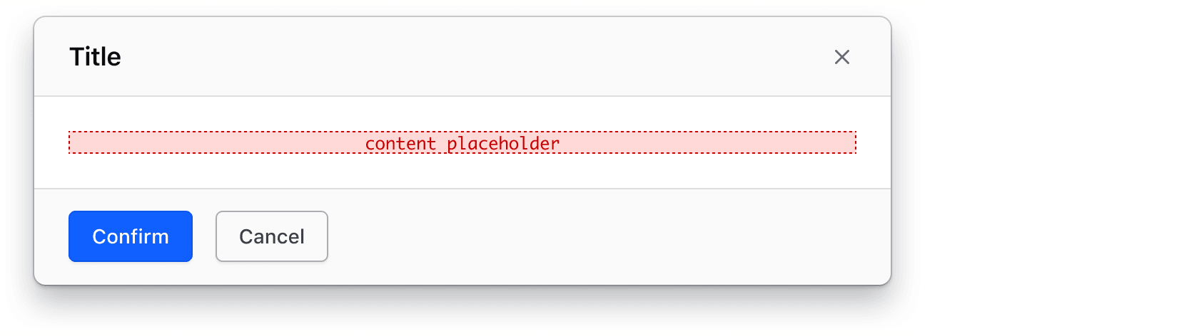 • A cancel or close button in the footer can also act as a way to dismiss the Modal, but doesn’t always function in the same way.